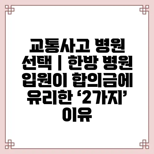 교통사고 후 한방 병원에 입원하는 것이 합의금에 유리한 이유는 무엇인가요?