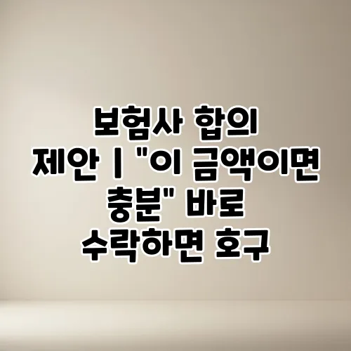 "이 금액이면 충분"이라는 말은 종종 미끼일 수 있습니다!. 보험사의 첫 번째 (합의)제안은 대부분 최저가로 책정됩니다. 그래서 처음 받는 금액에 즉시 반응하지 않는 것이 좋습니다. 대신, 신중하게 검토하고 전문가와 상담하십시오!.