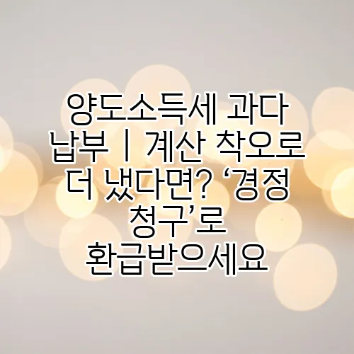 계산 착오로 양도소득세를 과다 납부한 경우, '경정 청구'를 통해 환급받을 수 있습니다. 경정 청구는 세무서에 요청하여 잘못된 세액을 수정하고, 환급받는 절차입니다.