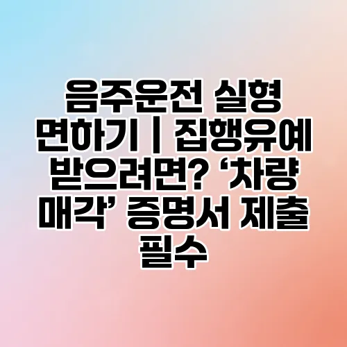 음주운전으로 인한 실형을 면하려면 형사처벌을 피하는 것뿐만 아니라 승소 또는 유리한 판결을 받을 수 있도록 변호사의 상담과 증거 확보가 중요합니다. 또한 차량 매각 및 관련 증명서 제출이 집행유예 판단에 영향을 줄 수 있어, 이 절차를 정확히 진행하는 것이 도움됩니다.
