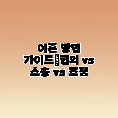 이혼은 많은 사람들이 인생에서 겪게 되는 중요한 결정 중 하나입니다. 이 과정은 때때로 복잡하고 힘들 수 있지만, 올바른 정보를 통해 보다 쉽게 접근할 수 있습니다. 이번 포스팅에서는 이혼 방법에 대한 다양한 옵션을 살펴보며, 협의 이혼, 소송, 조정 등 각각의 특징과 절차를 자세히 알아보겠습니다. 각 방법의 장단점을 이해하고, 나에게 맞는 이혼 방식을 찾는 데 도움을 드리겠습니다.