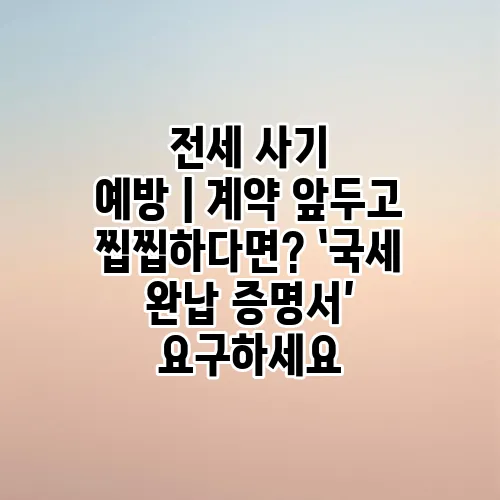 전세 계약은 많은 사람들에게 중요한 결정입니다. 하지만 이 과정에서 발생할 수 있는 전세 사기는 누구에게나 큰 걱정거리가 될 수 있습니다. 특히 계약을 앞두고 찝찝한 기분이 드는 경우, 필요한 조치를 취하는 것이 중요합니다. 이 글에서는 국세 완납 증명서의 필요성과 함께 전세 사기 예방을 위한 다양한 방법에 대해 알아보겠습니다. 여러분의 소중한 자산을 보호하기 위해 꼭 필요한 정보들을 준비했습니다.