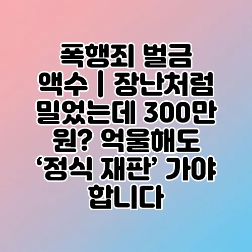 폭행죄에 대한 이야기를 해보려고 합니다. 특히, 폭행죄로 인해 발생하는 벌금 액수에 대해 많은 분들이 궁금해 하실 텐데요. 장난처럼 밀었는데 300만 원의 벌금을 부과받는 상황, 정말 억울할 수 있습니다. 이런 경우에는 반드시 정식 재판을 통해 자신의 입장을 밝히는 것이 중요합니다. 이번 포스팅에서는 폭행죄와 관련된 다양한 측면을 자세히 살펴보겠습니다.