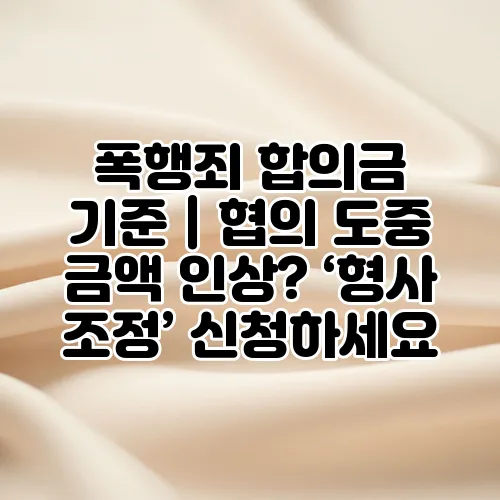 폭행죄 합의금은 형사 사건에서 매우 중요한 요소입니다. 사건의 경중에 따라 합의금이 달라질 수 있으며, 많은 사람들이 이를 이해하지 못해 어려움을 겪고 있습니다. 특히 협의 도중 금액 인상이 필요한 경우, '형사 조정'을 신청하는 것이 효과적일 수 있습니다. 이 글에서는 폭행죄 합의금의 기준과 형사 조정 절차에 대해 자세히 알아보겠습니다.