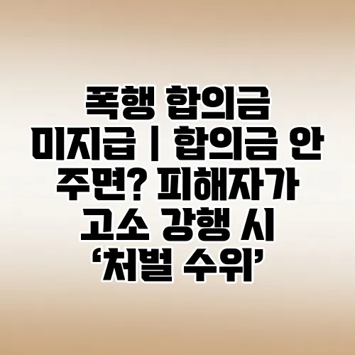 이 영상을 통해 폭행 합의금 미지급|합의금 안 주면? 피해자가 고소 강행 시 ‘처벌 수위’을 확인하세요.